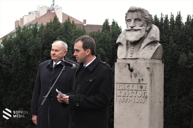 Ezt követően Dr. Simon István, Sopron Megyei Jogú Város alpolgármestere és Barcza Attila tanácsnok közösen helyezték el a város nevében az emlékezés koszorúját Sopron egykori polgármesterének a szobránál, majd néma főhajtással tisztelegtek Lackner Kristóf emlékműve előtt.