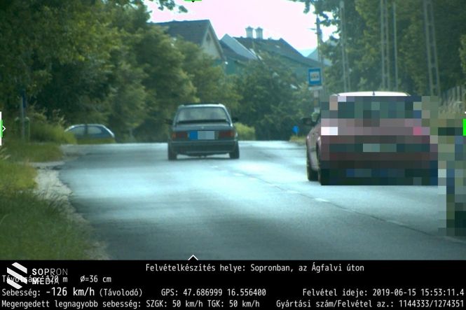 A Soproni Rendőrkapitányság Közlekedésrendészeti Osztály munkatársai sebességmérést végeztek 2019. június 15-én Sopronban az Ágfalvi úton. Az ellenőrzés idején egy BMW sofőrje az adott útszakaszra vonatkozó 50 km/h megengedett legnagyobb sebesség helyett 15 óra 53 perckor 126 km/h sebességgel közlekedett előzése során. A járművezető 300000 forint közigazgatási hatósági bírság és 8 büntetőpont kiszabására számíthat.