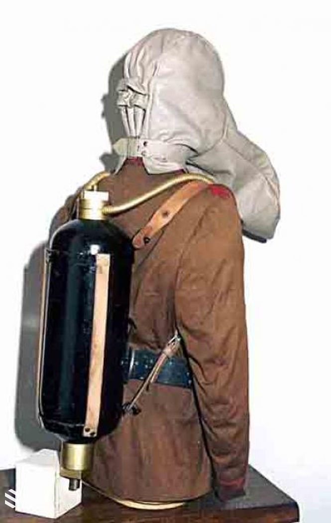 A sűrített levegő hajlékony csöveken át a fejre erősített és a külső levegőtől elzárt kecskebőr sisakba tódult és eközben kis sípon keresztül éles hangot adott. Ha a légzéshez elegendő mennyiségű levegő áramlott a sisakba, akkor ez a hang tiszta, éles volt. Ha azonban kevés volt a levegő, hangja gyenge és szaggatott volt.