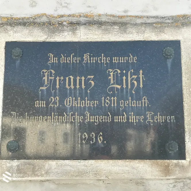 Ebben a templomban keresztelték meg Liszt Ferencet, mivel világra jöttekor szülőhelyének, Doborjánnak még nem volt saját temploma. A kapu pillérjén lévő angyalfejek mellett látható a tábla, amely a zenei virtuóz megkeresztelésének emlékét őrzi. A helyi anyakönyvben is megtekinthető az 1811. október 23-i bejegyzés a keresztelőről: