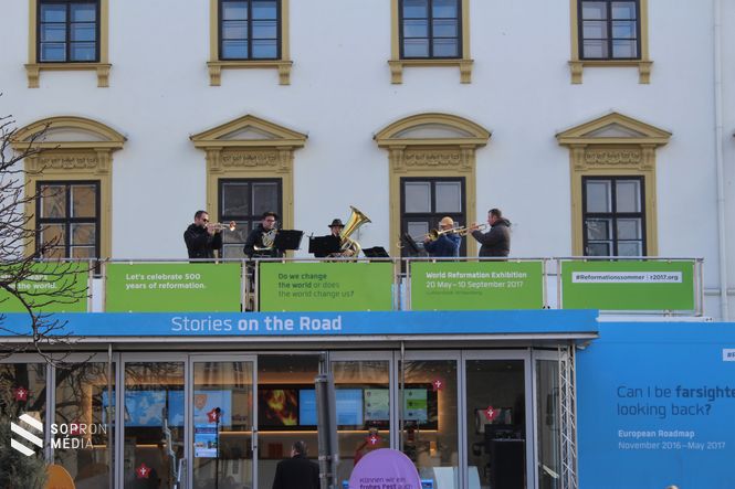 Az ünnepi megnyitón a Széchenyi téren állomásozó kamion lépcsőjén köszöntőt mondott Szemerei János, a Nyugati (Dunántúli) Evangélikus Egyházkerület püspöke, aki hangsúlyozta, hogy Sopron egy fontos pont a reformáció számára Magyarországon, hiszen hazánkban fontos mérföldköveket jelentett ez a város. Itt alakult először 1565-ben az első evangélikus gyülekezet, de például az 1670-es években lezajló ellenreformáció alatt is Sopron volt az országban az egyetlen hely, ahol tartottak evangélikus istentiszteletet.