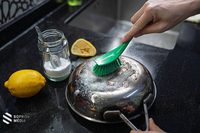 A mosogatóvízhez adjunk 2 púpozott evőkanál szódabikarbónát (a hagyományos mosogatószer mellé), így könnyebben fellazul az edényekre ragadt zsír- és ételmaradék. Az odaégett ételeket először hagyjuk a mosogatószeres-szódabikarbónás vízben ázni, aztán menjünk rájuk szódabikarbónával behintett nedves szivaccsal vagy karcolásmentes súrolószerrel!