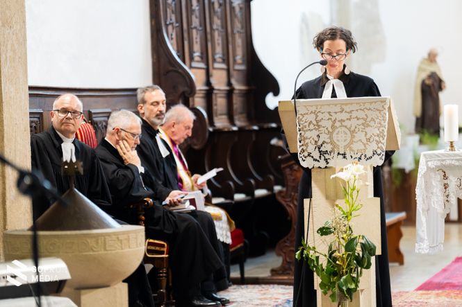 Egy egészen traumatikus, mély dráma történt itt, Sopronbánfalván is, de szerte az országban a magyarországi németséggel, amikor is több transzportban a háború utánt kiűzték őket Magyarországról. 20 kilós csomagot vihettek magukkal, itt kellett hagyniuk az otthonaikat, állataikat. Tulajdonképpen szinte semmit nem tudtak magukkal vinni, az ismeretlenbe indultak el. Ez nagyon mélyen megrázta azokat, akik kevesen itt maradhattak, hiszen egy-egy közösségnek csak a töredéke maradhatott. Rokoni szálak, családi kapcsolatok is szétszakadtak, úgyhogy ez egy elképesztő dráma volt. Nyolc évtized telt el azóta, de ez egy olyan mély seb, ami az evangélikus közösségekben a mai napig érezhető, hiszen az itt maradt ingatlanok, épületek, amelyek üresen maradtak, azok a mai napig kiáltanak. Azért emlékezünk, mert ezzel tartozunk, és ezen keresztül is rámutathatunk arra, hogy a legmélyebb tragédiák, drámák, szomorúságok között is a hívő embernek van kapaszkodója, és ezt próbáltuk megszólaltatni ma is, miközben örültünk annak, hogy a kitelepítettek leszármazottai közül is sokan megtisztelték az alkalmat, és az itt maradókkal együtt megélhették a szétszakítottságban is az összetartozást