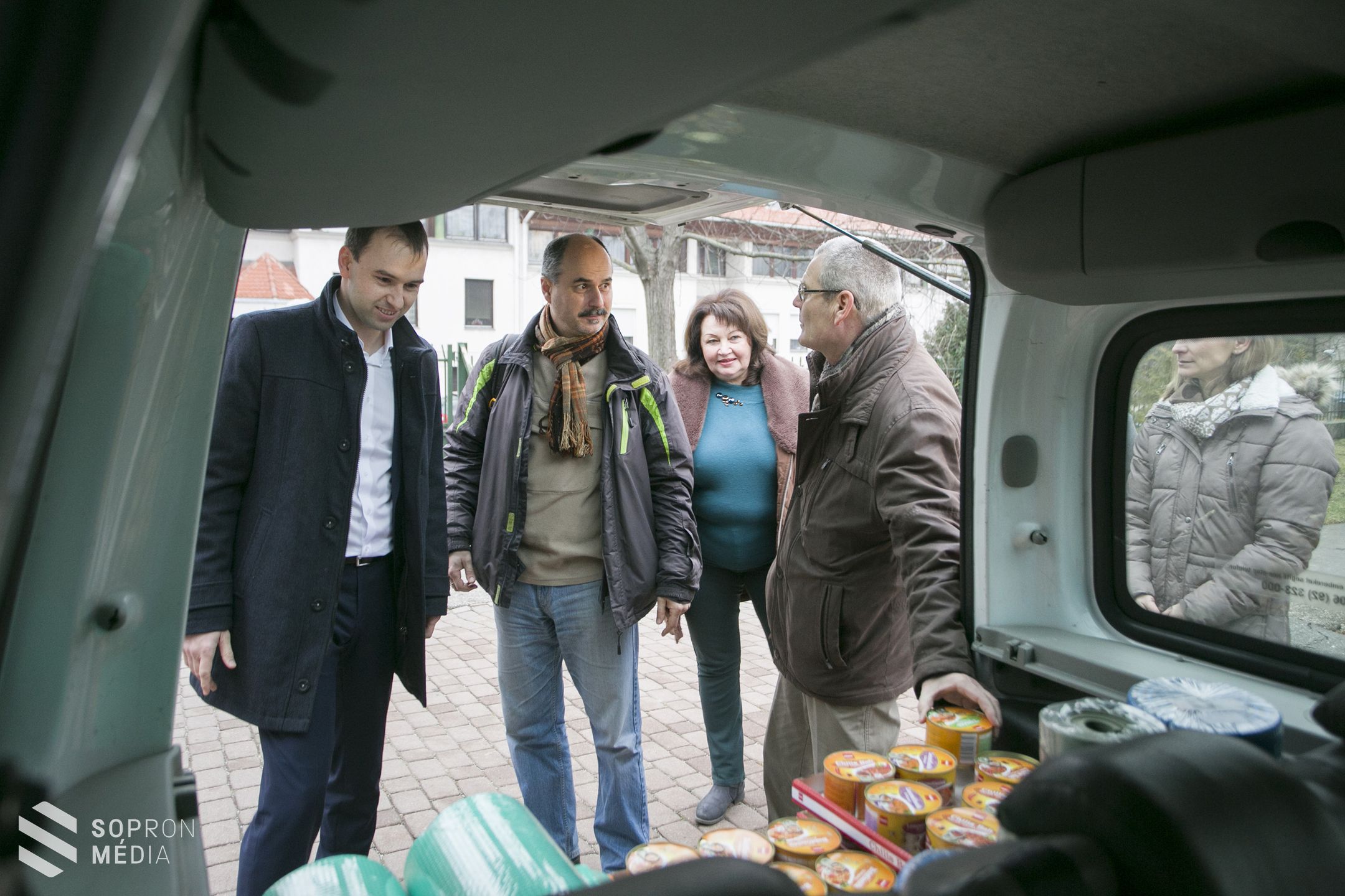Közel 900.000 forint értékű adományt adott át a Sopron Segít Közalapítvány a Családok Átmeneti Otthona, a Gyermekek Átmeneti Otthona, a Gyermekjóléti Szolgálat és a Hajléktalanokat Ellátó Intézet javára. A családok és a gyermekek tartós élelmiszereket, tisztálkodási szereket tartalmazó csomagot kapnak, amennyiben olyan helyzetbe kerülnek, amikor nincs lehetőségük ezeket megvásárolni. Az adományt Barcza Attila, Roth Gyuláné és Mizser Gyula a közalapítvány kuratóriumának tagjai vitték el az intézmény részére. Az élelmiszerek többsége készétel konzerv, amely azonnali fogyasztást tesz lehetővé. A Soproni Szociális Intézmény krízisautóját 100.000 forint értékben töltötték fel, élelmiszerekkel, takaróval és polifommal, amelyet a Hajléktalanokat Ellátó Intézet szakemberei vihetnek a rászorulóknak.