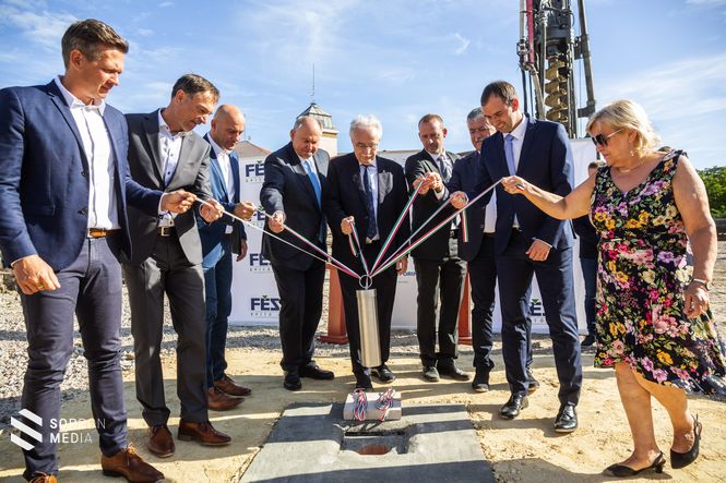 Az épület alapkövét és az időkapszulát dr. Farkas Ciprián polgármester, Barcza Attila országgyűlési képviselő, dr. Fodor Tamás korábbi polgármester tette le, Dr. Simon István és Csiszár Szabolcs alpolgármesterekkel, kivitelezők és önkormányzati képviselők jelenlétében.