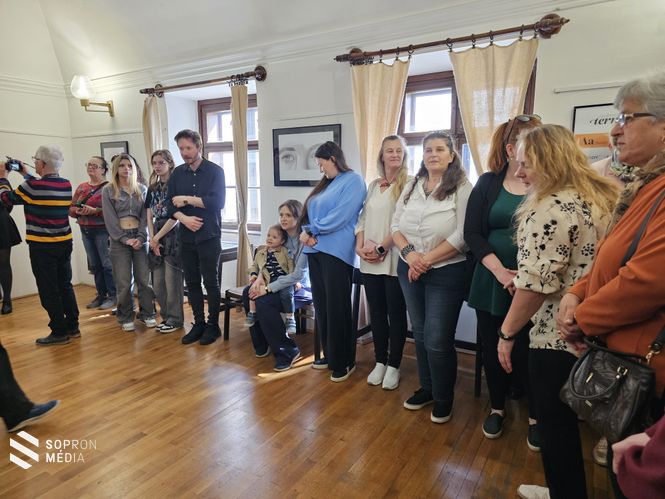 Néhány évvel ezelőtt keresett meg bennünket a Soproni Képzőművészeti Társaság azzal, hogy volt kollégánk, Jakabné Tóth Márta emlékére - aki az elnöke volt a képzőművészeti társaságnak - alapítanának egy díjat, amelyet tehetséges tanulóinknak ítélnének oda, és ennek a közös kapcsolatnak az eredménye ez a mai kiállítás, ahol az a tanuló, aki megkapta ezt a díjat, mutatja be az alkotásait.