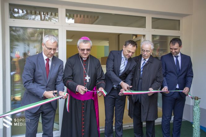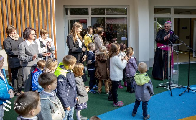 Az átadó ünnepség hangulatát az óvodások műsora tette derűssé, akik Sün Balázs meséjét adták elő. Az épületet Dr. Veres András és Soltész Miklós a kivitelezővel közösen avatta fel. A szalagot a város részéről Dr. Fodor Tamás polgármester valamint Barcza Attila Sopron és térsége országgyűlési képviselője vágta át. A megyéspüspök áldást mondott az új óvodára, amit azután a gyermekek birtokba is vettek. Az ünnepségen az új épületet ünneplő szülők és gyermekek mellett részt vett Sopron több önkormányzati képviselője is.