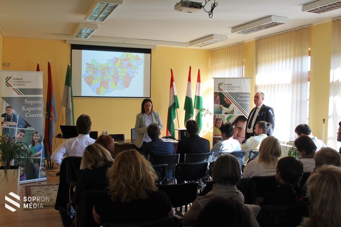 A vendégek délután a Soproni Tankerületi Központ épületében hallgattak meg előadásokat. A magyar köznevelési rendszer változásairól Marek János, a tankerület vezetője, majd Hajnal Gabriella, a Klebelsberg Központ szakmai elnökhelyettese tartott előadást. Hajnal Gabriella kiemelte, rendkívül fontos, hogy a gyermekek túlterheltségét csökkentsék, és ehhez az intézményvezetők is nagyban hozzájárulhatnak. Kiemelte továbbá, hogy a jelenlegi központi vezetésnek az a legfőbb feladata, hogy legyen folyamatosság a tananyagban, a diákoknak egy adott tananyagot egyszer kelljen megtanulniuk. Az elnökhelyettestől megtudtuk, a nemzeti alaptanterv megalkotása a Klebelsberg Központ jövő évi legnagyobb feladata.