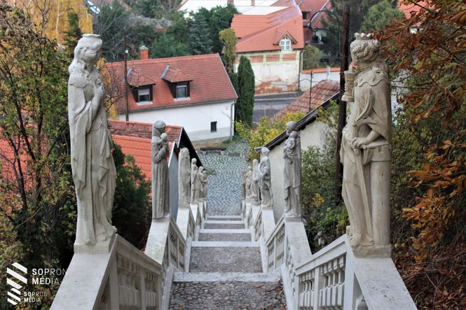 1667-ben a Kolostordomb oldalában épült meg az ország második kő kálváriája, amely 14 helyett csupán 5 stációból állt. 1750-re készült el a falu irányából felvezető 88 lépcsőfokos barokk Szentek lépcsője, amelyet 14 szentet ábrázoló szobor szegélyez.