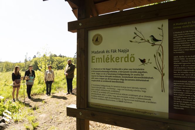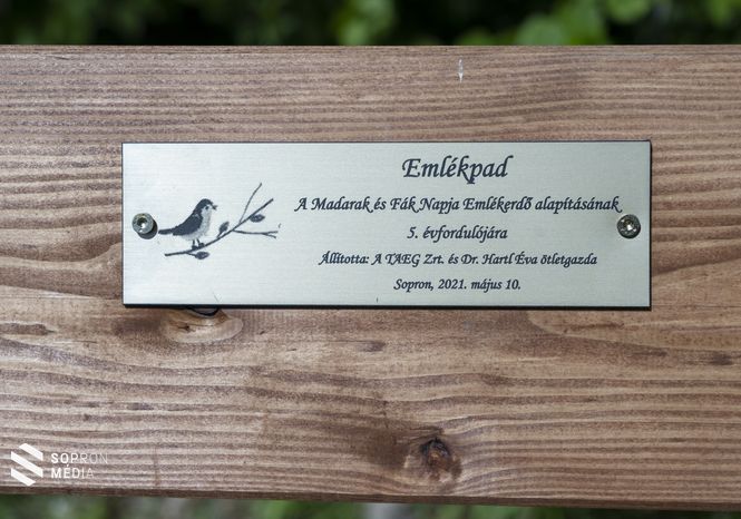 Május 10-én, a madarak és fák napján emlékpaddal gazdagodott az emlékerdő. A kirándulókat az emlékpad mellett egy új információs táblafelület is várja, mely a területre jellemző madár és fafajokat mutatja be. Az ötletgazda a Madarak és Fák Napja Emlékerdő gondolatának megálmodója Dr. Hartl Éva, a Soproni Egyetem Benedek Elek Pedagógiai Kar egyetemi docense.