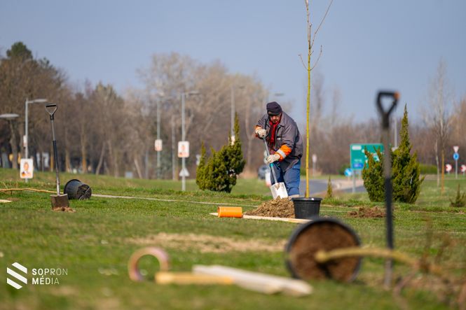 A szerdai munkálatokban a Soproni Önkormányzati Hulladékkezelő Kft. munkatársai segítettek, akik 3 mezei juhart, 3 korai juhart, 1 fanyarkát, 3 japán akácot és 2 hárs facsemetét ültettek el.