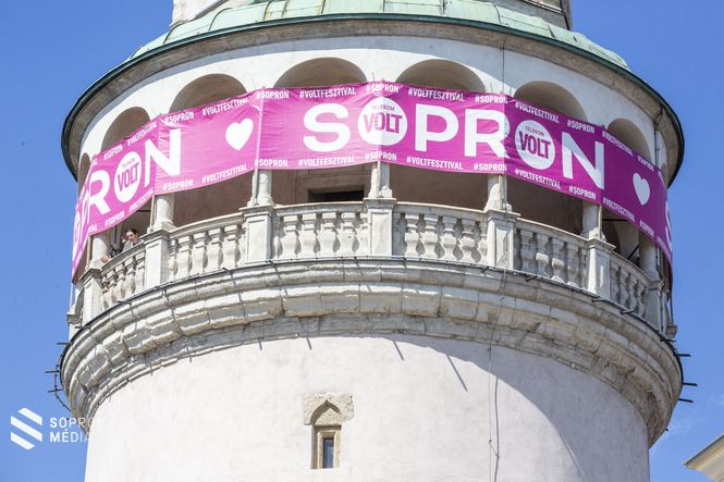 A Tűztornyot díszítő molinó a VOLT Fesztivál és Sopron egységét szimbolizálja és évről-évre jelzi: hatalmas bulinak ad otthont városunk.