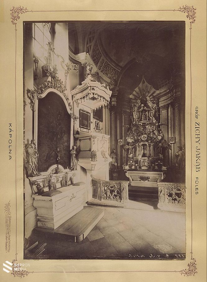 A palotát a 18. század elején alakíttatta át Meskó Ádám barokk stílusban. Északi szárnyában ovális szentélyű kápolna kapott helyet, mely sajnos sok kárt szenvedett el a történelem folyamán, pedig nem kis hírű művészek dolgoztak kialakításán. 1945-ben szinte csak puszta falai maradtak meg. Egykor festett, keretes bejárata fölé egy medallionba Schaller István soproni festő készítette el a Máriacelli Madonna képét 1776-ban. Mára elpusztult mennyezetfreskóit Dorfmeister István festette 1781-ben, a négy evangélistát és az erények szimbólumait készítette el. Megsemmisült a barokk oltár is, főalakja egy Mária-kegykép volt, melynek két oldalán Szent István és Szent László királyok életnagyságúszoboralakjai álltak.