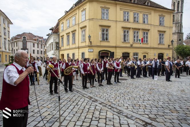 - Létezik egy tétel, ami szerint a zene azért van a világon, hogy élményt nyújtson számunkra – emelte ki beszédében Dr. Farkas Ciprián városi tanácsnok, aki Sopron Önkormányzata nevében üdvözölte a jelenlévőket. - Ezért külön öröm, hogy a fúvósok is részt vesznek a Soproni Ünnepi Hetek idején a programkavalkádban. Ugyanis ezek a szép számú együttesek nem csak a hangzásban nyújtanak élményt, hanem a szemnek is kedves a látványuk, a vonulásukkal tagadhatatlan ünnepélyességet sugároznak – mondta Dr. Farkas Ciprián.