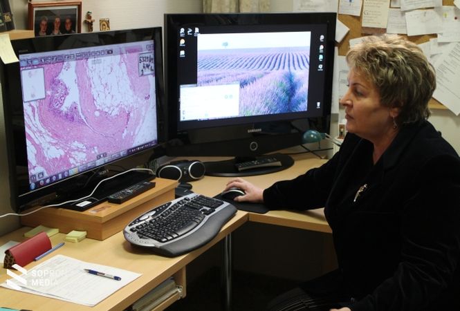Az ország egészségügyi intézményei közül mindössze 4 helyen – köztük Sopronban – működik mostantól olyan nagy kapacitású, 250 szövettani metszet egyidejű, digitális feldolgozására alkalmas szkenner (Pannoramic 250 Flash), mely a rutin leletezésben a telepatológia gyakorlati megvalósítását teszi lehetővé – mondta el a sajtó képviselőinek tartott bemutatón Dr. Ringelhan Birgit, a Patológiai Osztály osztályvezető főorvosa.