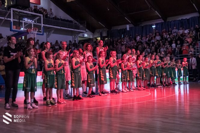 Előbb a két csapat futott ki füstfelhőben a parkettre, majd a közönség visszatekinthetett a tavalyi szezonra, felhúzásra került a magasba az Euroliga döntőnek és a bajnoki címnek emléket állító zászlók. Az Év Játékosának járó díjat Fegyverneky Zsófia vehette át, akit a kosárlabdától búcsúzó Zsovár Orsolya váltott a középkörben. Az első szakaszban fej-fej mellett haladt a két gárda, 10 perc után 23-22-re a ceglédiek vezettek. A pontgazdag találkozón a második negyedben sem alakult ki sokáig nagy különbség. A csapatok 20 perc alatt 12 triplát értékesítettek. Végül a félidő hajrájában tudott 10 pont környéki előnyt kialakítani a Sopron.