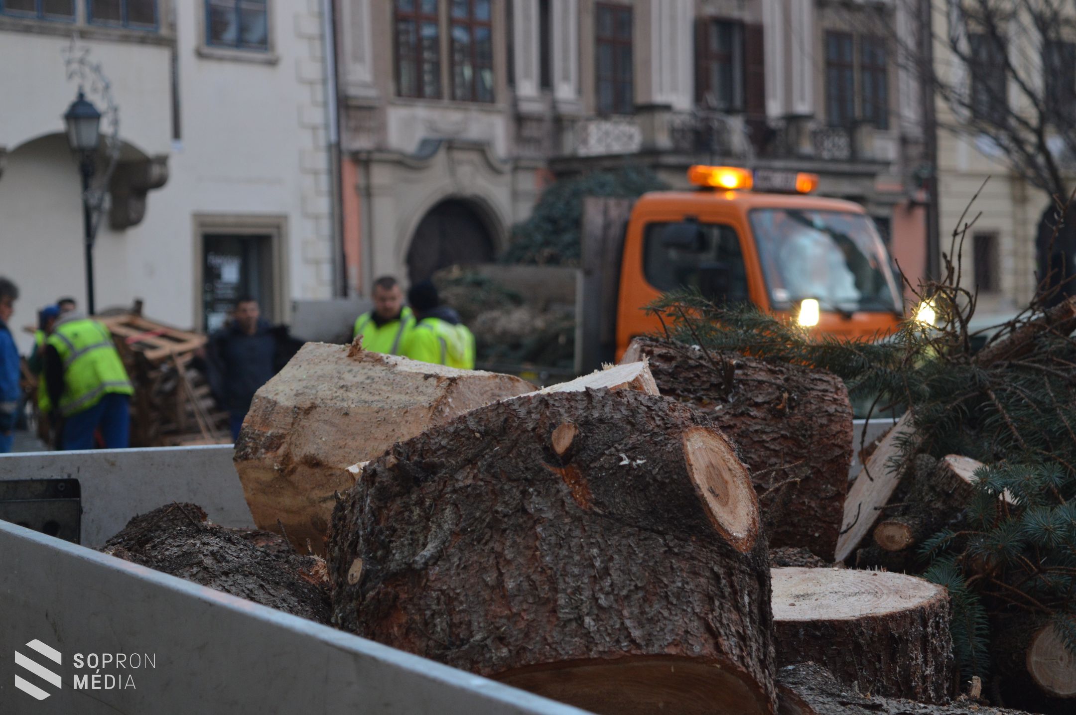 A reggeli órákban vitték el a Fő térről Sopron idei karácsonyfáját, amely az elmúlt évekhez hasonlóan ebben az évben is szociális tűzifaként hasznosul majd.