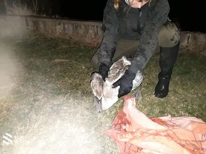 - Délután négy körül láttam a Facebook-on, amelyben egy hölgy segítséget kért, mivel látott egy hattyút, amelyről úgy hitte, hogy beteg, vagy odafagyott, ugyanis a madár nem mozdult – mondta Bodnár Ágota madármentő. - Én azonnal elindultam Gy. Andreával és H. Lászlóval karöltve, és keresőlámpák segítségével hamar meg is találtuk a fiókát – fűzte hozzá.