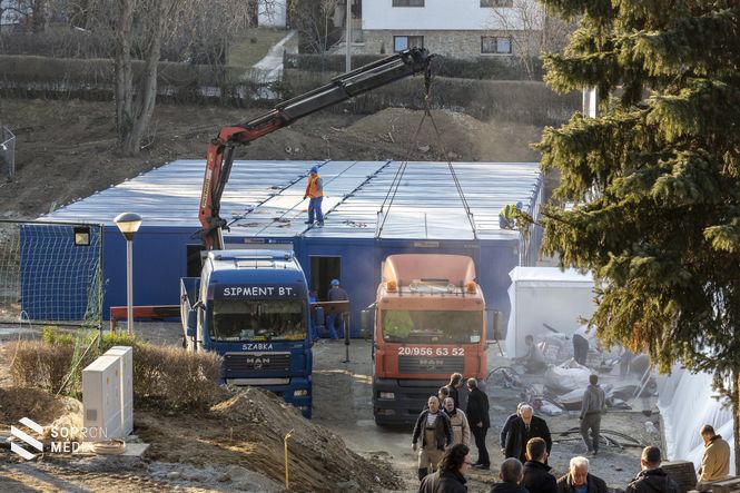 Elkészült a medencékhez szükséges gépház, valamint helyükre kerültek a konténeres öltözők és vizesblokkok is, amelyek az új uszoda elkészültéig üzemelnek majd. A helyére került az 50x33 méter alapterületű légtartásos sátortető, amely abban segít, hogy az időjárási viszonyoktól függeltenül igénybe lehessen venni a medencéket. Ennek köszönhetően a vizisport és a vízzel kapcsolatos kikapcsolódás az elkövetkező másfél évben kulturáltan, nagyon jó körülmények között tud majd zajlani Sopronban.
