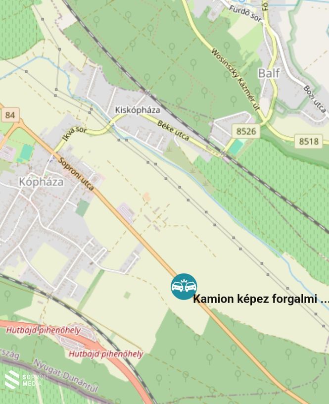 Manőverezés közben elakadt egy kamion a 84-es főút 113-as kilométerénél, Kópháza térségében. A helyszínre a nagycenki önkéntes és a soproni hivatásos tűzoltók vonultak. A mentést a soproni mentő csörlőjével hajtják végre. A főút érintett szakaszán átmenetileg szünetel a forgalom.