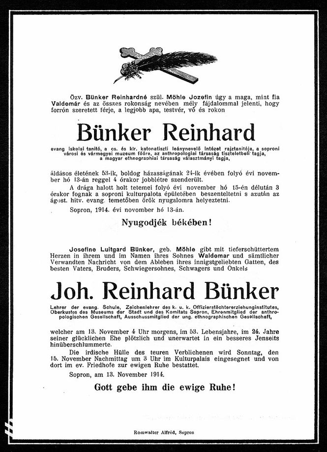 Soproni Szemle 1979. XXXIII. évf. 4. Megemlékezések / Tompos Ernő: Bünker János Rajnárd (1863–1914)