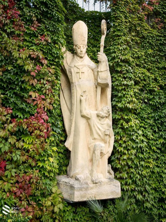 Szent Márton a dóm, a püspökség és egész Burgenland tartomány védőszentje is. A templom mellett álló szobrát Jakob Adlhart osztrák szobrász (1898 - 1985) eredetileg a dóm presbitériumába készítette. A szobor Szent Mártont Tours-i püspökként ábrázolja, aki a legenda szerint irgalmasságot gyakorol egy koldussal szemben. A koldus maga Krisztus, aki próbára tette őt. Szent Márton Tours harmadik püspöke volt, 371-ben választották meg, a római katolikuson kívül az ortodox, az anglikán és az evangélikus vallás is tiszteli őt. Itteni szobra azért különleges, mert általában római katonaként lóháton, vagy püspökként libával ábrázolják.