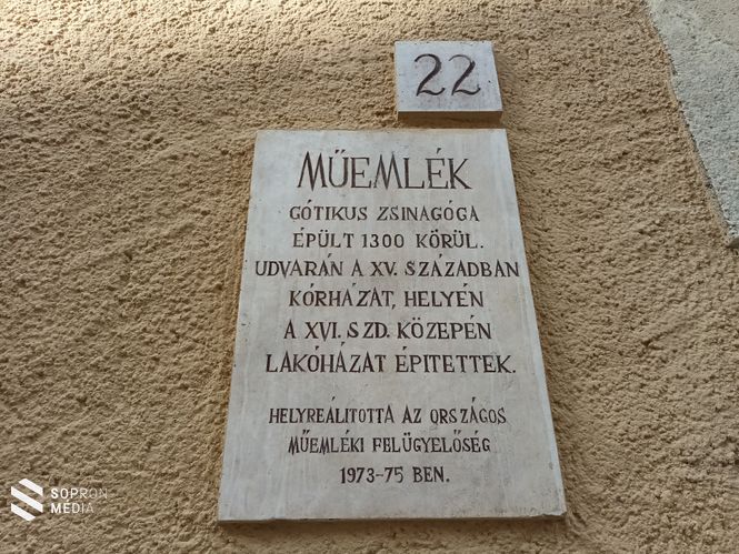 Az utcafronton álló két késő középkori épület közül szemben állva a baloldali volt a templomszolga háza, a jobb oldali pedig az ispotály, ahol az utazó zsidó kereskedők megszállhattak. A zsidók 1526-os száműzése után ezen épületeket lakóházként hasznosították, az elhagyott Ó-Zsinagóga állaga pedig idővel erősen leromlott. Emléke ugyan még hosszasan fennmaradt: az Új utca 22. épületét 1792-ben még „zsidó templom” (Judentempel) néven említette Joseph Perathoner lakatosmester végrendelete. 1967-ben Dávid Ferenc művészettörténész fedezte fel ismét, a műemléki helyreállítása pedig a sopronhorpácsi születésű Sedlmayr János tervei alapján készült el.