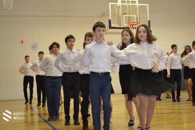 A műsorszámok között a végzősök adták elő hónapok óta gyakorolt táncaikat, s bár a palotás talán elsőre furán hatott a kosárpályán, az érettségizők műsora és a gyönyörű kosztümök feledtették a bálterem hiányát. Meg az a hatalmas taps is, amit kaptak.