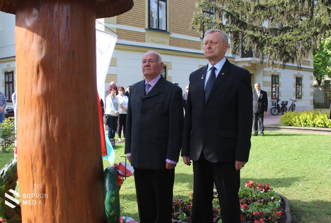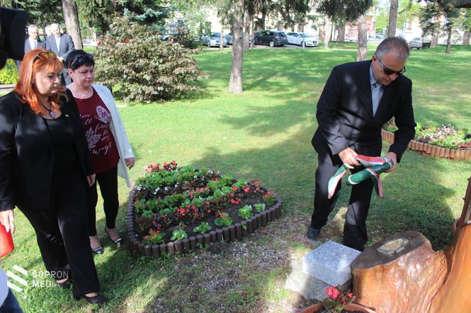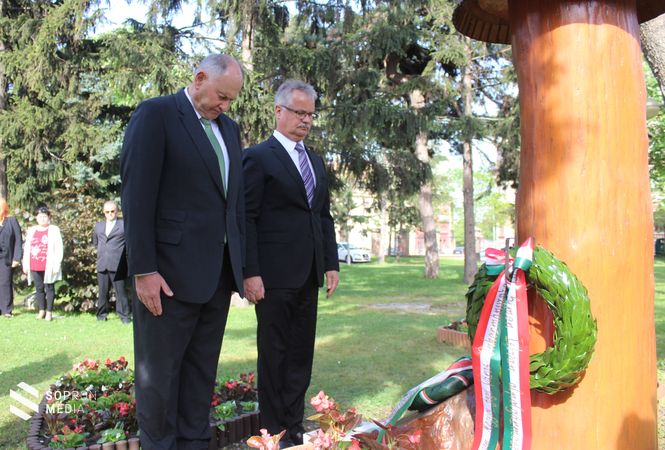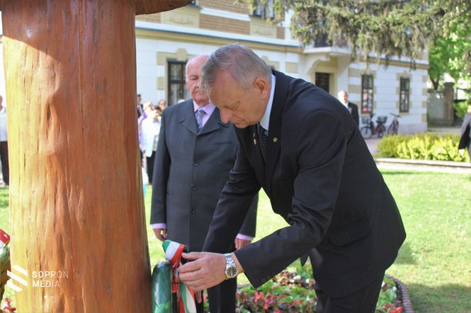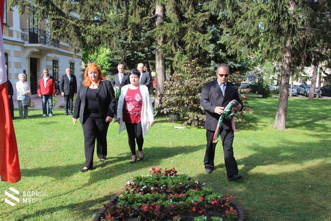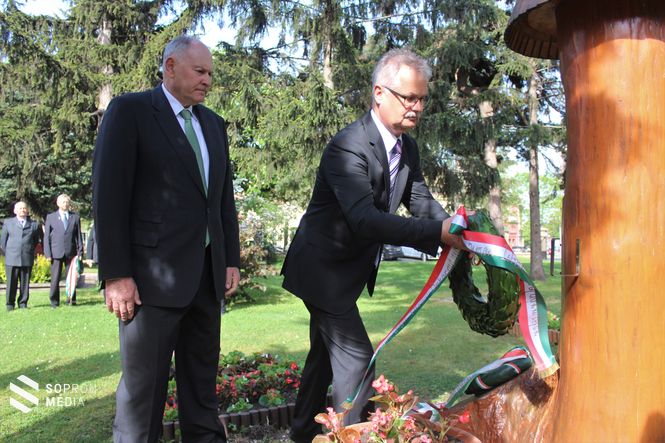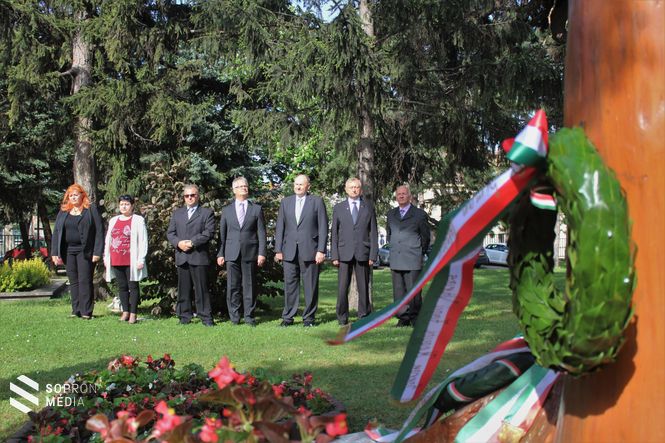 Az idei ünnepségen Sopron Megyei Jogú Város Önkormányzatának nevében Dr. Simon István alpolgármester és Stöckert Tamás városi főtanácsos vett részt és helyezett el koszorút.
