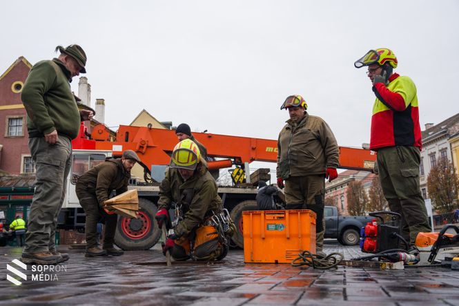 Az eddigi évekhez hasonlóan idén is kihívás volt elszállítani, mind a mérete, mind a forgalomirányítás miatt, ez utóbbit a városi rendőrök kitűnően megoldották. A daruval volt némi problémánk, megsüllyedt. ám végül problémamentesen megoldottuk a kivágást az itt jelenlévő soproni vállalkozókkal közösen