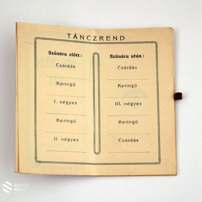 A résztvevők az úgynevezett „szünórában” toalettet igazítottak, csemegéztek a körbehordott büféből, a különböző édesített ostyákból, kuglófokból, csokoládés pogácsákból, linzeres, omlós süteményekből. A tálakon szerepeltek még főtt gyümölccsel töltött kosárkák, habcsókok, ánizsos bundában sült gyümölcsök, aszpikos, könnyű húsos falatkák, töltött tésztácskák, de ekkor már ismerték a limonádét és a szörpöket is. A hölgyek a táncrendhez egy darab puha ónceruzát is kaptak, ezzel írták fel a táncpartnerek sorrendjét, és az egészet a csuklójukra kötözve hordták. Igazi iparművészeti remekek is készültek belőlük, kincsként gyűjtögették őket, és találkozni köztük igazi extremitásokkal is.