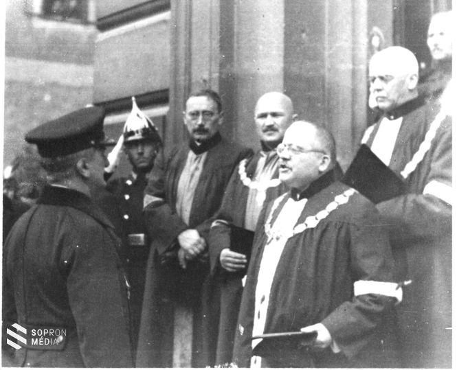 Nevezetes nap az épület életében 1930. október 19. E napsugaras őszi vasárnapon avatta fel Klebelsberg Kunó gr. kultuszminiszter Horthy Miklós kormányzó jelenlétében az evangélikus teológia új palotáját. Az ünnepség keretében Sándy Gyula műegyetemi tanár, az épület tervezője tett jelentést: "Jelentem, hogy megtisztelő feladatomnak eleget tettem, a magyar iparosok és munkások becsületes munkájával az építést befejeztem. Isten engedelmével, Sopron építészetérti lelkesedéssel, hazám és egyházam javára építettem e művet, hogy kő kövön maradjon, időtlen időkig." E szavakkal adta át a díszes művű aranyozott kulcsot dr. Bozóky Gyula rector magnificusnak, aki a kormányzótól kapott engedély után kitárta az egyetem kapuját.