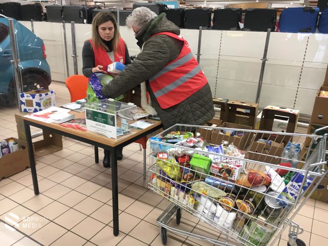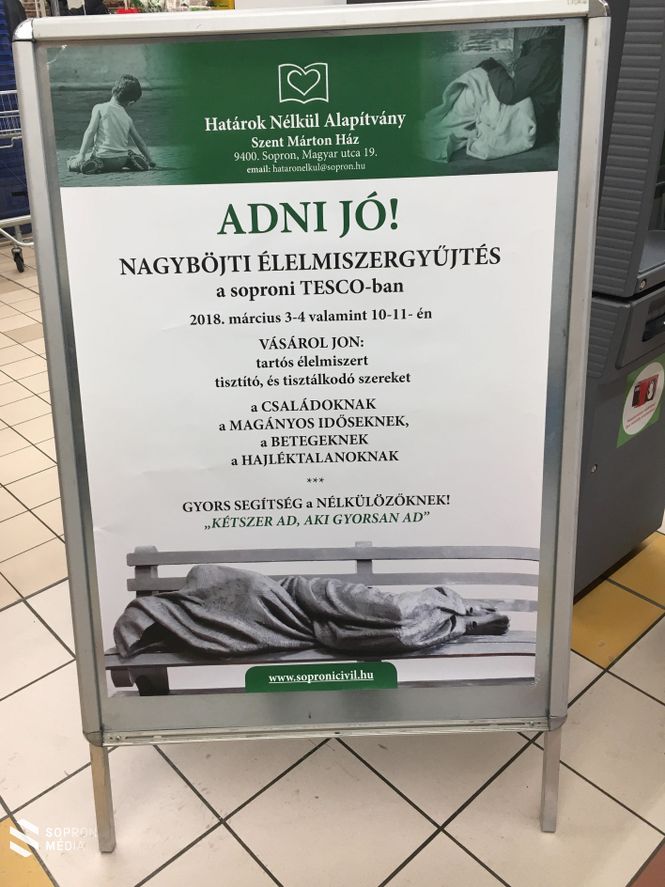 A Határok Nélkül Alapítvány - Szent Márton Ház a hétvégén tartós élelmiszert, tisztító- és tisztálkodószereket gyűjt családoknak, magányos időseknek, betegeknek, hajléktalanoknak az egyik soproni hipermarket bejáratánál. Vasárnap estig még tart az akció, amihez március 10-11-én is lehet csatlakozni. Szombaton több kosár adomány gyűlt össze a vásárlóknak köszönhetően.