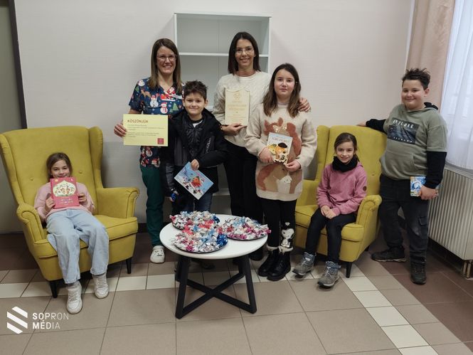 A gyerekek a kórházban ápolt kis betegeknek szaloncukorral is kedveskedtek, valamint saját könyveikből is felajánlottak egy-egy példányt az újonnan átadott könyvespolcra.