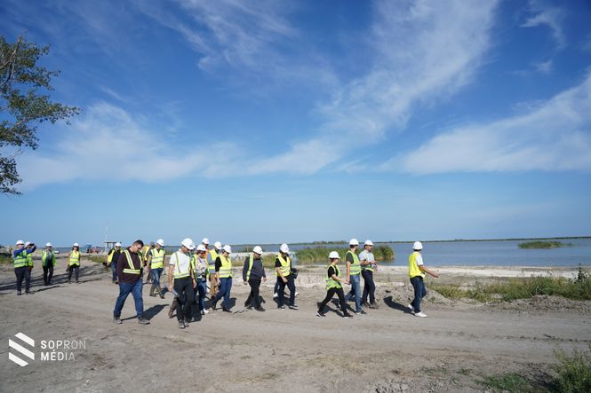 A partfal kialakítása is jó ütemben halad, láthatóan már sokkal inkább hasonlít a látványterveken ábrázolt képre, mint a korábbi állapotokra. Kiépültek az új mólók és stégek alapjai, állnak a cölöpök, amelyekre hamarosan a burkolat is rákerül – hangzott el a bejáráson.