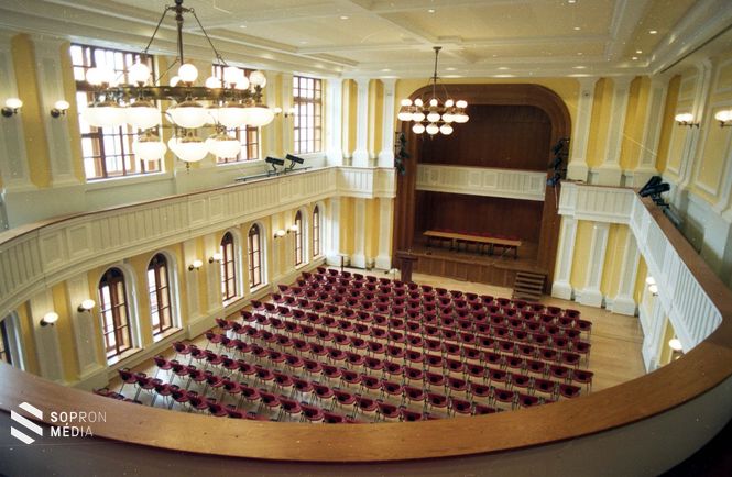 Technikai újítások is kötődtek ide: 1877-ben nagy érdeklődés közepette mutatta be Salamin Leó reáliskolai igazgató a telefont. Az első városi telefonbeszélgetés a reálgimnáziumból a nagyterembe irányult. Később telefonhírmondóval a nagyteremből közvetítettek hangversenyt Győrbe.