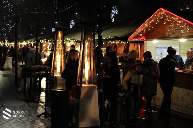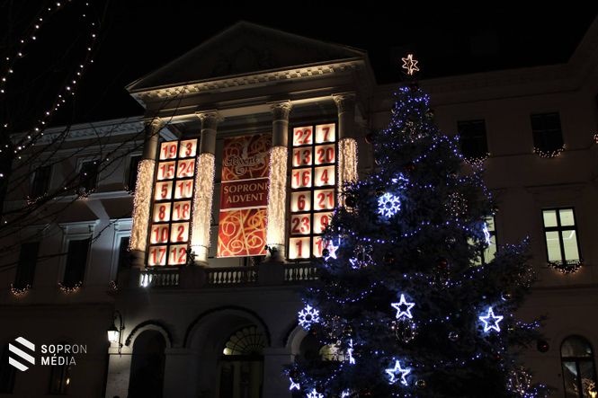 A Fő téren kap helyet a város karácsonyfája, az állatsimogató, az adventi koszorú és a naptár is, melynek ablakait ismét általános iskolás gyerekek rajzai díszítik majd. Az adventi koszorú első három gyertyáját vasárnaponként, 18 órakor gyújtják meg a történelmi egyházak képviselői. A negyedik gyertyagyújtás rendhagyó módon december 23-án, szombaton lesz, szintén 18 órakor. Újdonság, hogy ezúttal a Fő téren is felállítanak egy kisebb színpadot, ahol minden nap lesznek programok. Tíz iskola, hat óvoda és a zeneiskola is fellép majd, de a Soproni Petőfi Színház művészeitől valamint helyi zenekaroktól is láthatnak, hallhatnak itt produkciókat az érdeklődők. A Fő tér színpadi programjai kevés kivétellel naponta 17 órakor kezdődnek.