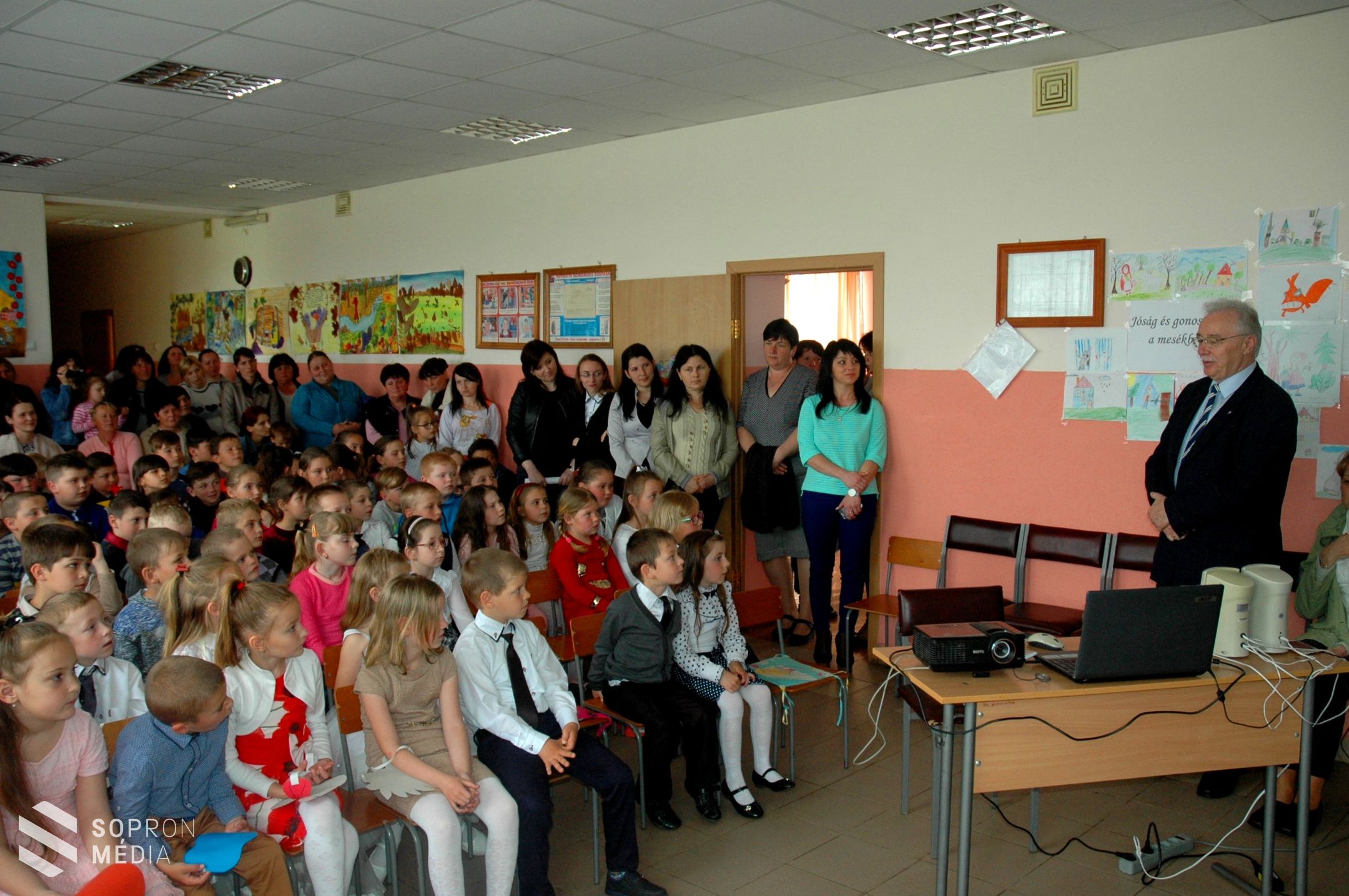Idén május 4. és 7. között tett látogatást a kárpátaljai településen a Dr. Fodor Tamás polgármester által vezetett soproni delegáció, akik füzetcsomagokat, írószereket és sportfelszereléseket, illetve a soproni Széchenyi István Városi Könyvtár által felajánlott gyermekkönyveket és klasszikus magyar műveket is vittek a csongoriak számára.