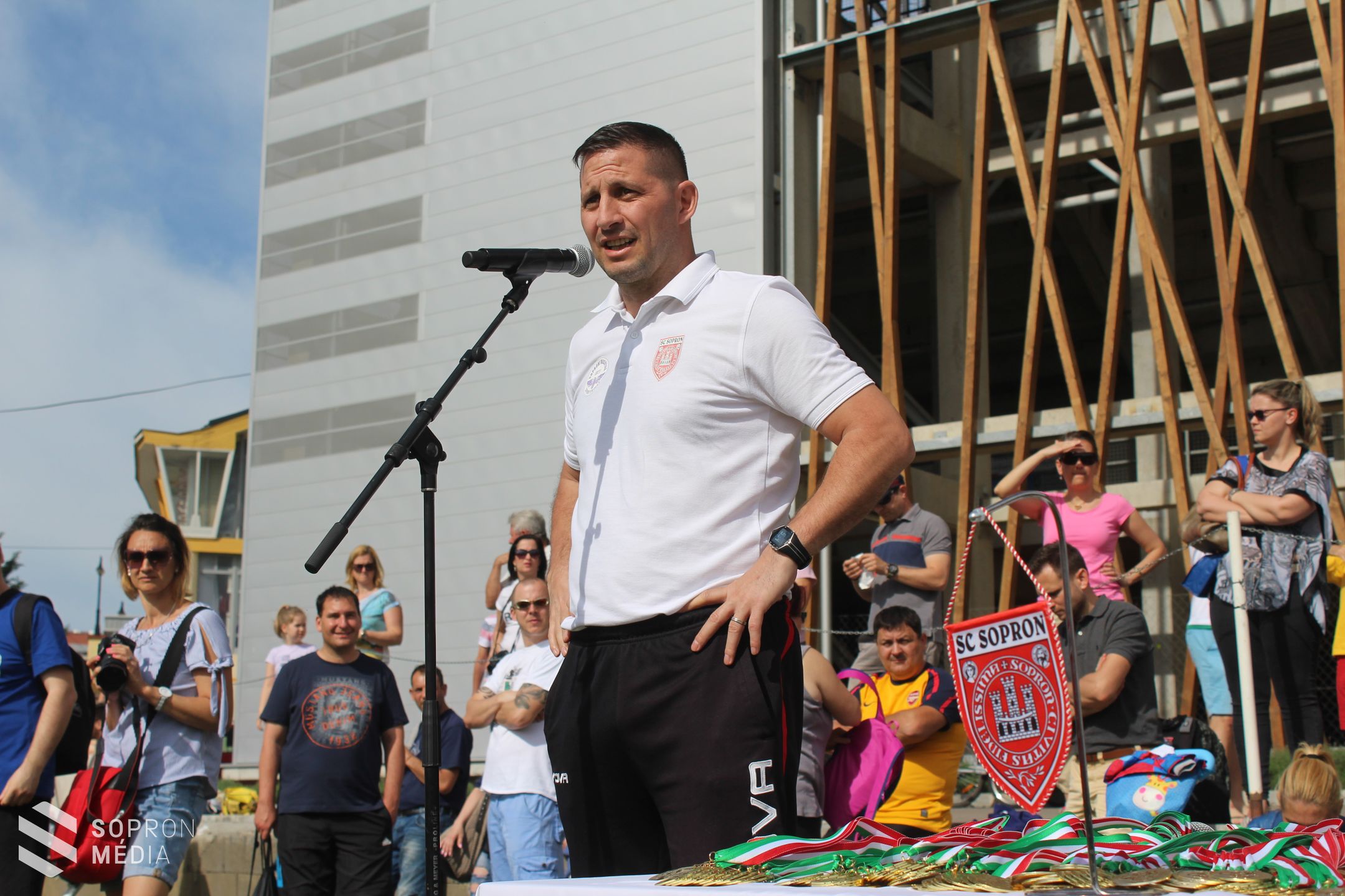 Remek, napsütéses idő várta a résztvevőket az idei Sportmajálison amelynek ezúttal is a Káposztás utcai stadion adott otthont. A tizedik alkalommal megrendezett eseményre 17 óvodából érkeztek a gyerekek, akik így több mint kétszázan mutatták be ügyességüket. A résztvevőket Csiszár Ákos, az SC.SOPRON elnöke köszöntötte, aki ismertette a lebonyolítás formáját és aki köszönetét fejezte ki az óvodák vezetőinek illetve a résztvevő gyerekeknek és szüleiknek, hogy idén is ilyen nagy érdeklődés övezi az eseményt. Mielőtt a állomásokra indultak a csapatok az utánpótlás nevelő egyesület minden résztvevőnek egy ajándék polóval is kedveskedett, amelybe azonnal bele is bújtak a gyerekek.