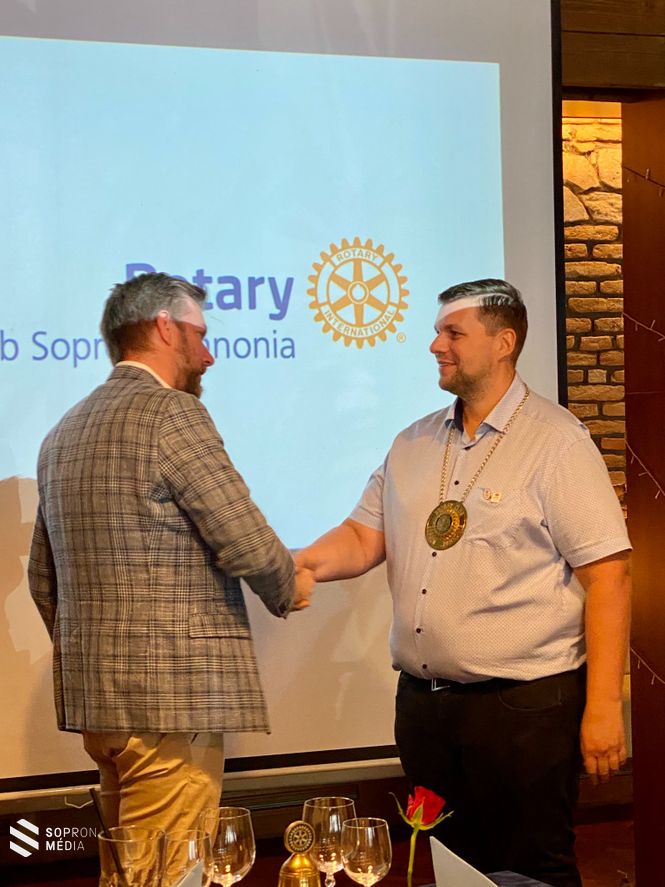 Szakács Zoltán leköszönő elnök adta át a láncot Ferecskó Gábornak, aki a 2022-2023-as rotarys évben tölti be az elnöki tisztséget a klubban. - Köszönjük a leköszönő elnöknek az egész éves munkáját - írták Facebook-bejegyzésükben.