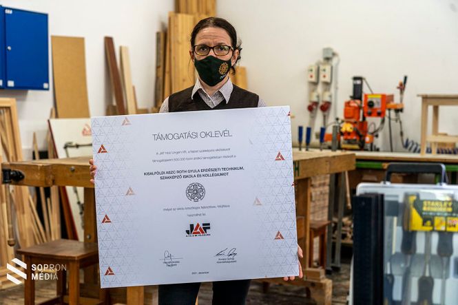 "Cégünk kiemelt figyelmet fordít a fiatalok támogatására. A Roth Gyula Szakképző Iskola faipari képzését támogatva 500 forint értékű ajándékot adtunk át a tanműhelynek" – tudtuk meg Kovács Györgytől, a JAF Holz Ungarn Kft. kirendeltségvezetőjétől.