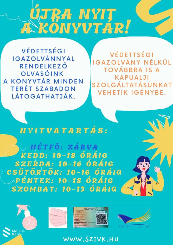 A könyvtár tereit a védettségi igazolvánnyal rendelkező felnőttek, valamint azon 18 év alattiak látogathatják szabadon, akiknek kísérője be van oltva.