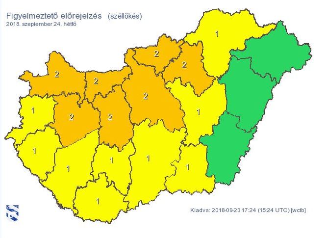 Erősen viharos (90 km/h-t meghaladó) széllökésekre főleg a front érkezésekor az északnyugati határ közelében, a Bakonyban és a Dunazug-hegyvidéken kell nagy eséllyel számítani.