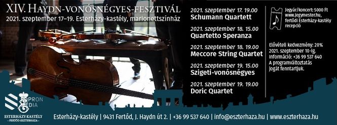 A XIV. Haydn-vonósnégyes-fesztiválra a www.jegymester.hu weboldalon, vagy a fertődi Esterházy-kastély recepcióján lehet jegyet vásárolni. A programról további részleteket itt találnak.