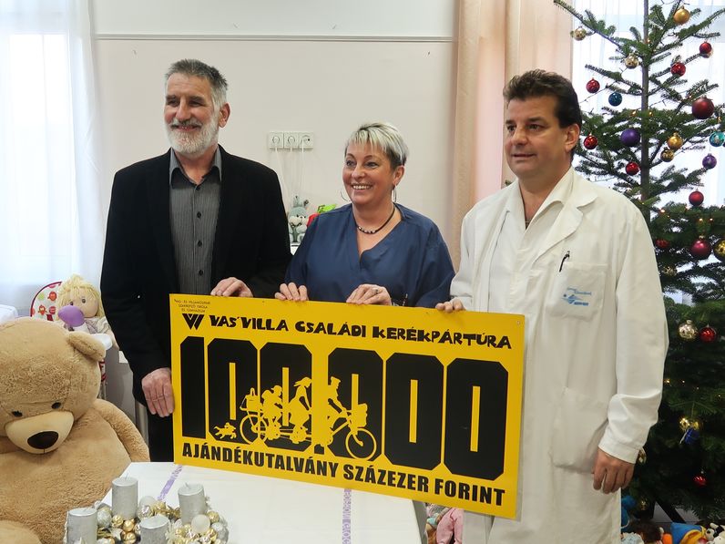 100 ezer forinttal támogatják a 28. VasVilla' Családi Kerékpártúra bevételéből a Soproni Gyógyközpont Gyermekosztályát. A kezdeményezés keretében ugyanekkora összeget gyűjtöttek össze az Együtt az Életért, Sopronért Mentő Alapítvány részére is. Az adományokat szerdán adták át ünnepélyes keretek között.